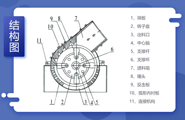 錘式破碎機(jī)結(jié)構(gòu):錘式破碎機(jī)的工作原理: